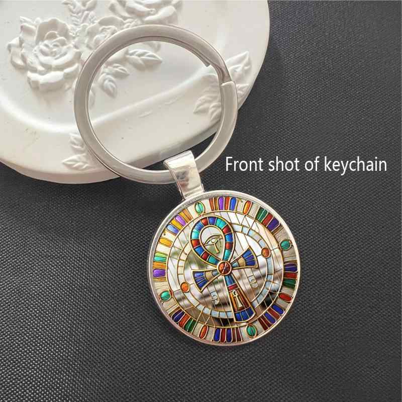 キーホルダー かわいい 美しい カラフルな シンボル模様 ガラス製 ペンダント キーリング バッグチャーム 普段使い おしゃれなアクセサリー 小物(x2)