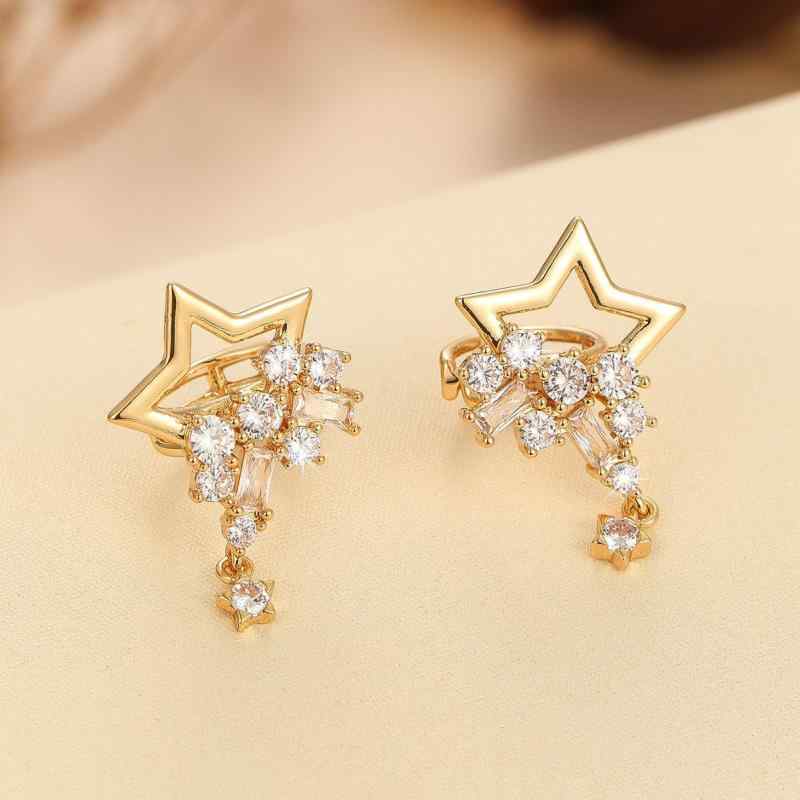 ・カテゴリ: 耳飾り・対象: 女性・スタイル: 新中国風・スタイル分類: 個性派トレンド・タイプ: U字イヤリング・素材: 銅・デザイン: 幾何学・流行要素: スター・加工: メッキ加工・カラー展開: 金色(白ジルコニア)、銀色(白ジルコニア)