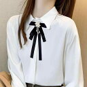 シャツ レディース 男女兼用 韓国風 上品 レトロ ハンドメイド ベルベット リボン 襟飾り ボウタイ イギリス学院風 スクール 無地 ブラック 大人用(x3)