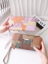 財布 レディース 長財布 韓国風 レトロ 幾何学模様 バイカラー PUレザー スマホ 普段使い 軽量 ピンク系 ブルー系
