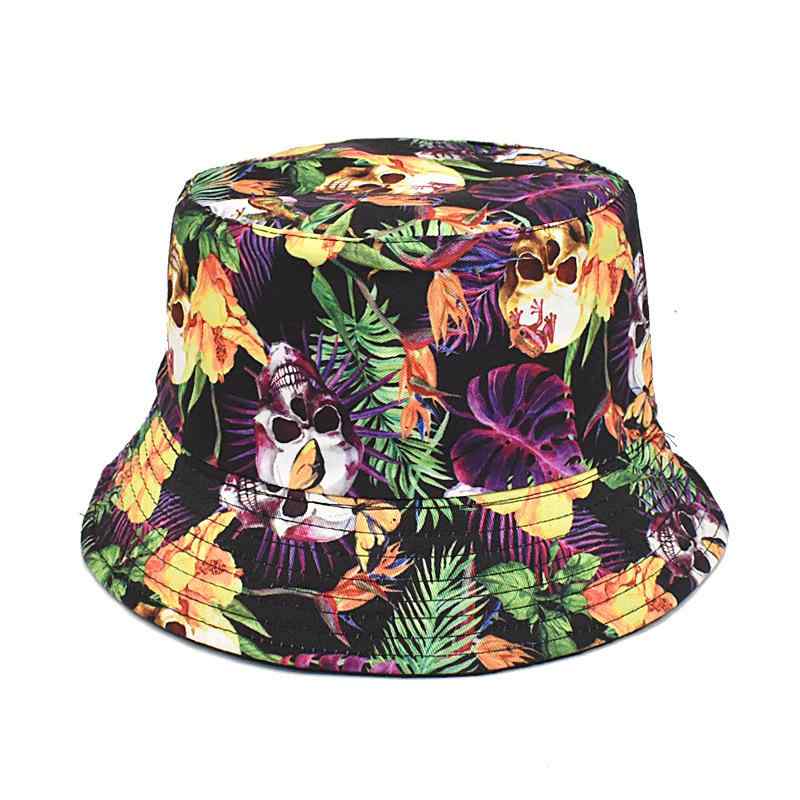 バケットハット メンズ レディース 男女兼用 スカル柄 ドクロ リバーシブル UVカット 紫外線対策 日よけ 広つば 通気性 春夏秋 アウトドア レジャー トレンド カジュアル(x2)