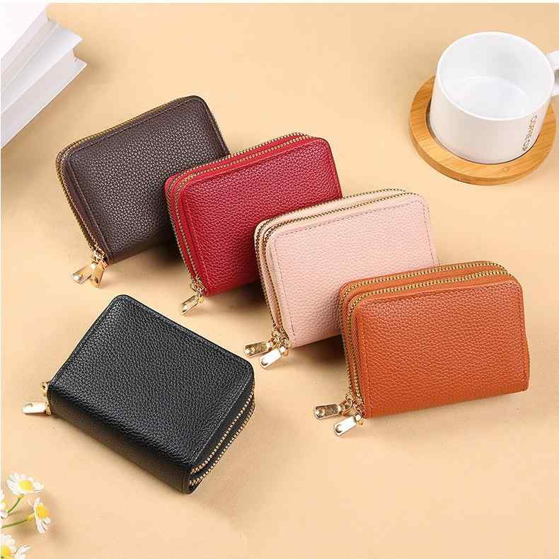 小銭入れ ユニセックス 男女兼用 ライチ柄 無地 コンパクト ミニ財布 じゃばら 多機能カードポケット ダブルファスナー PUレザー 軽量 ハンドポーチ スタイリッシュ 二つ折り 普段使い