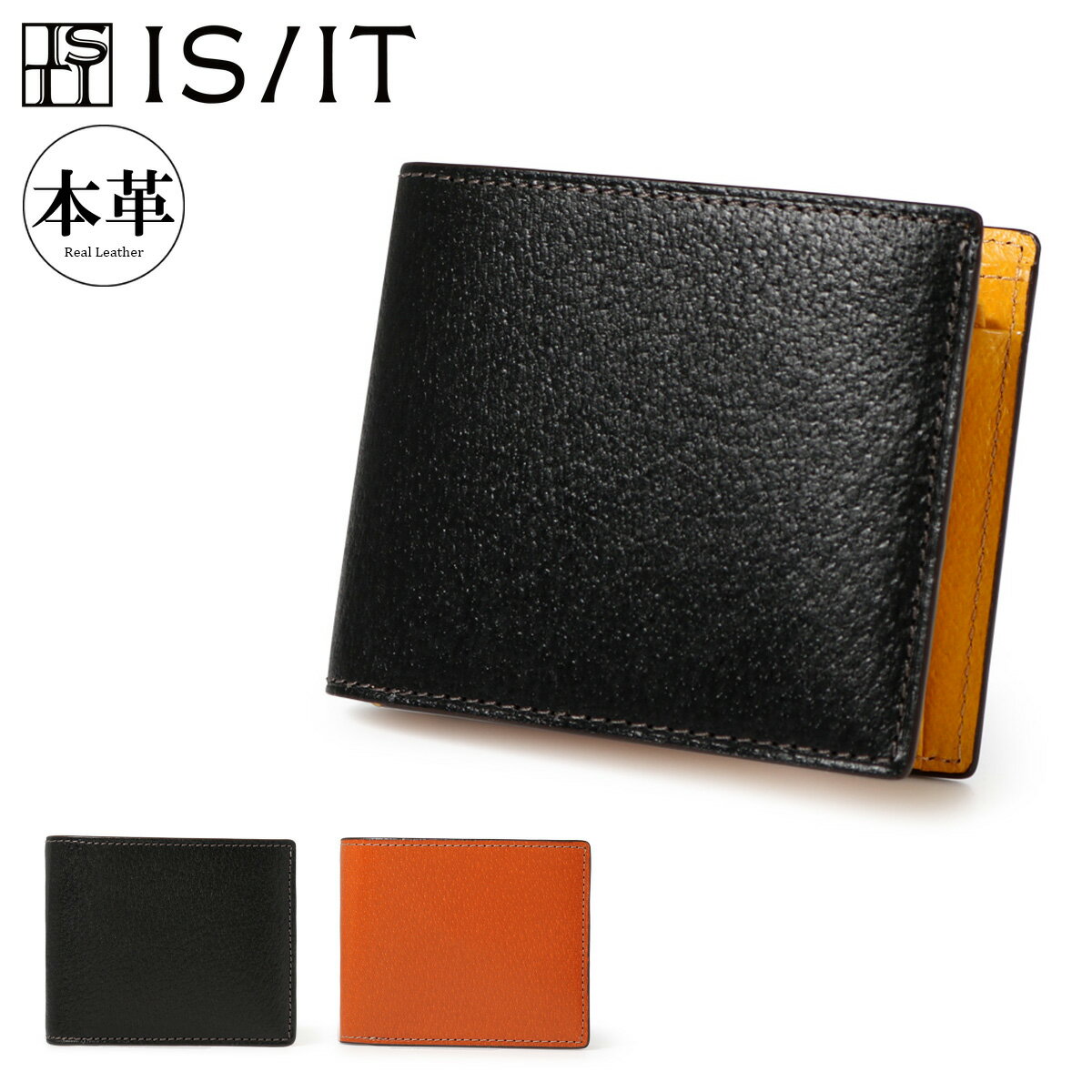 ISIT イズイット 二つ折り財布 ジーナ 969613 ブラックITEM SPEC COLOR VARIATION isit-969613ブランド:ISIT イズイット 伝統的で特徴的な革素材である「アメ豚」を外装、内装に贅沢に使用した小物シリーズ。植物タンニン鞣し革を染色した後、グレージングで飴色に仕上げており、透明感のあるツヤ感やピッグ独特の肌目が魅力になります。豚革は牛革より軽くて通気性が良く、摩擦に強いことも特徴になります。アメ豚は使い込むほどに深みとツヤが増し、味わい深いエイジングが堪能することができます。カード段は、ISIT共通ディティールである特徴的なバイアス仕様で、シャープでモダンなテイストになっています。内装色は全て本来のアメ豚であるイエローで、運気UPも兼ねています。 サイズ:約W11.5×H9×D2.5cm重量:約100g カラー:【01】ブラック【04】キャメル 素材:表地:豚革裏地:ポリエステル 仕様:内側:札入れ×2スナップボタン式小銭入れ×1(仕切り有り)カードポケット×6フリーポケット×3 付属:ブランド専用BOX 備考:※濡れてしまった時は、変色・色移りの発生する恐れがありますので、速やかに柔らかい布で軽くたたくようにして拭き取り陰干ししてください。※また長時間の直射日光により、変色・退色・変形の発生する恐れがありますので、ご使用にならない時は、直接に日光のあたらない所に保存してください。 ご注意ください: ● 商品の画像は、できるだけ商品に近いカラーにて掲載をしております。 お客様のモニターの発色または設定により、実際の色味と異なる場合もあります。あらかじめご了承ください。 ● メーカーサイズ、もしくは実際に測った寸法となります。商品の素材等の個体差により、若干サイズのばらつきがあります。サイズはあくまでも目安としてお考えください。 ● 天然皮革・素材を使用している商品によっては、天然素材の特性上、部位により風合いやシミ・シワ感や焦げ、濃淡など多少の個体差がある場合があります。あらかじめご了承ください。