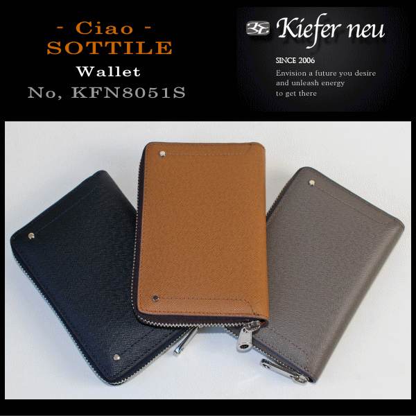 人気ブランド Kiefer neu(キーファーノイ)最高級 サフィアーノレザー 本革 牛革 二つ折り ラウンドファスナー財布 小銭入れ付き KFN8051S キャメル色 グレー色 ネイビー色
