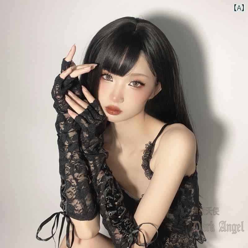 手袋 レディース レース 手袋 黒 白 ハーフフィンガー コスプレ セクシー ランジェリー クール ロリータ JK アームカバー パンク 接触冷感 速乾