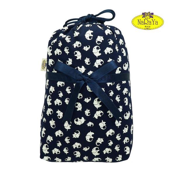 巾着ポーチ 巾着袋 コスメポーチ 化粧ポーチ ランジェリーポーチ 旅行用 トラベルポーチ 衣類収納 大容量 おしゃれ かわいい レディース 洗える コットン製 軽量 マルチポーチ Lサイズ NaRaYa ナラヤ タイ リボンバッグ ネイビーエレファント NB-258/M