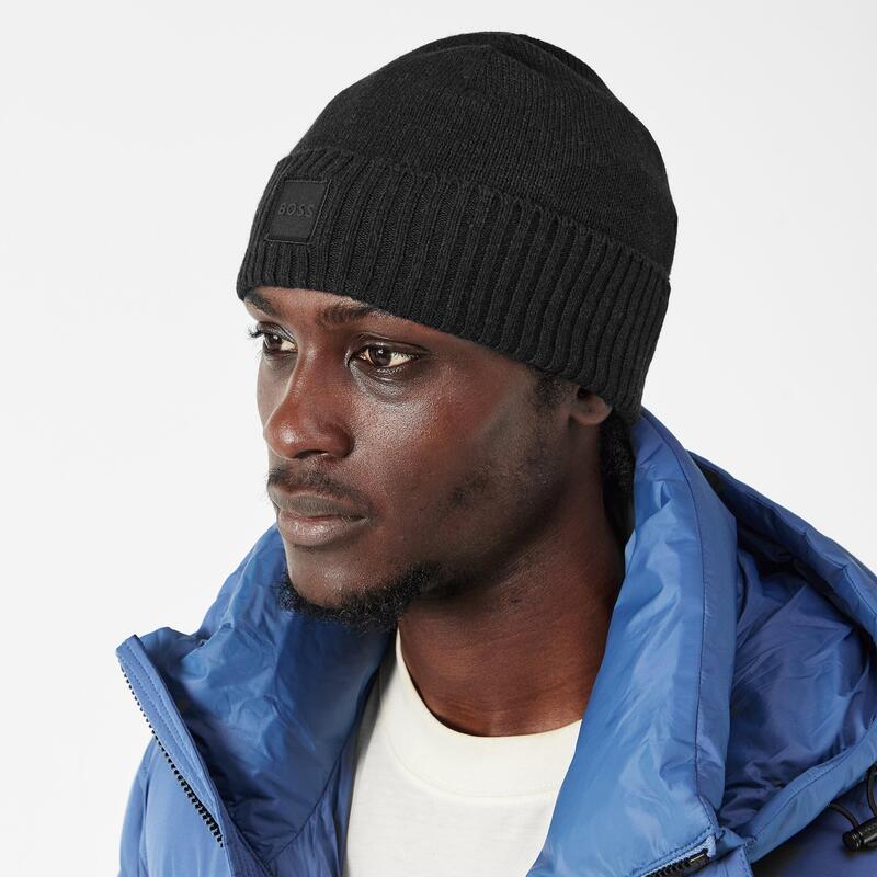 ヒューゴボス メンズ アクセサリー 帽子 Hugo Boss Men's Akaio Turn-Up Beanie Hat Black ブラック