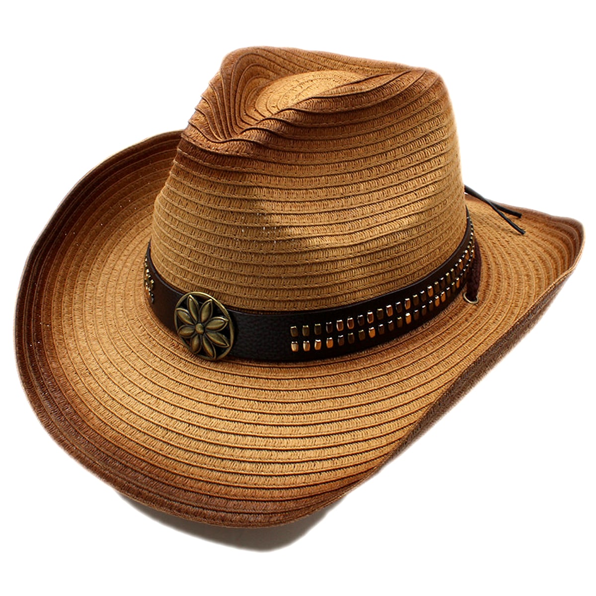 全3色! [Metal Studs Belt Western Cowboy Hat] メタル・スタッズ・ベルト・ウェスタン・カウボーイハット! 帽子 テンガロンハット ストローハット 麦わら帽子 つば広 ソンブレロ サンキャップ シンプル 日焼け防止 男女兼用 バイクに! バイカー
