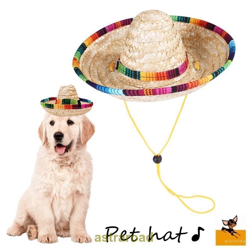 ペット用帽子 ペット用ハット 犬 ネコ ペット用品 小物 雑貨 メキシコ風 ソンブレロ 麦わら帽子 あご紐付き 無地 カラフル レインボー かわいい 夏