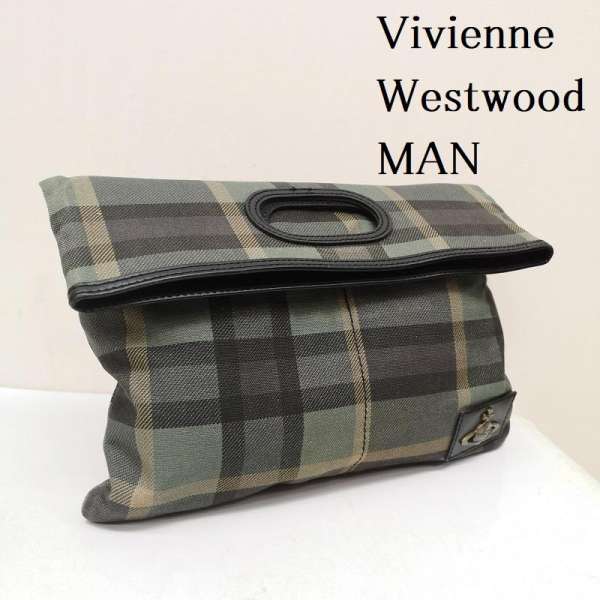 ヴィヴィアンウエストウッドマン メタル オーブ チェック クラッチバック メンズ -【USED】【古着】【中古】50143169