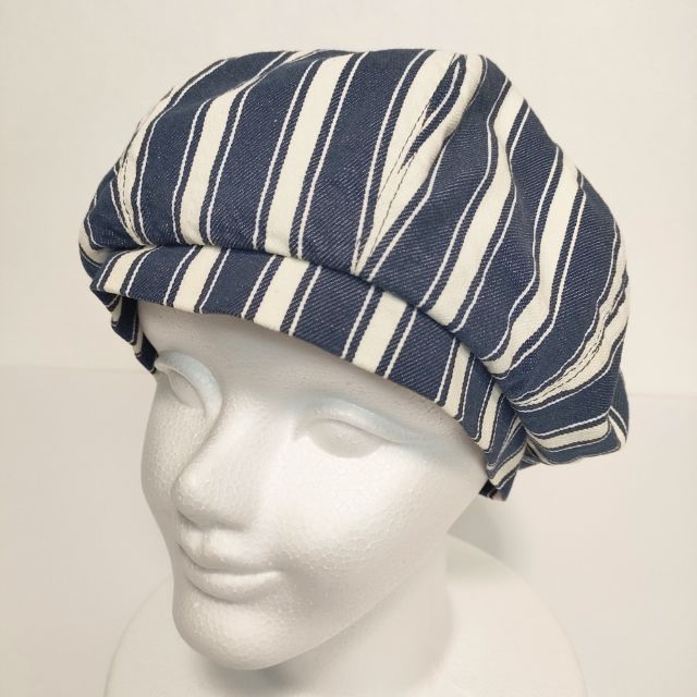 Yarmo デニム ストライプ ハンチング 帽子 M ハット ホワイト ネイビー レディース ヤーモ【中古】5-0116G