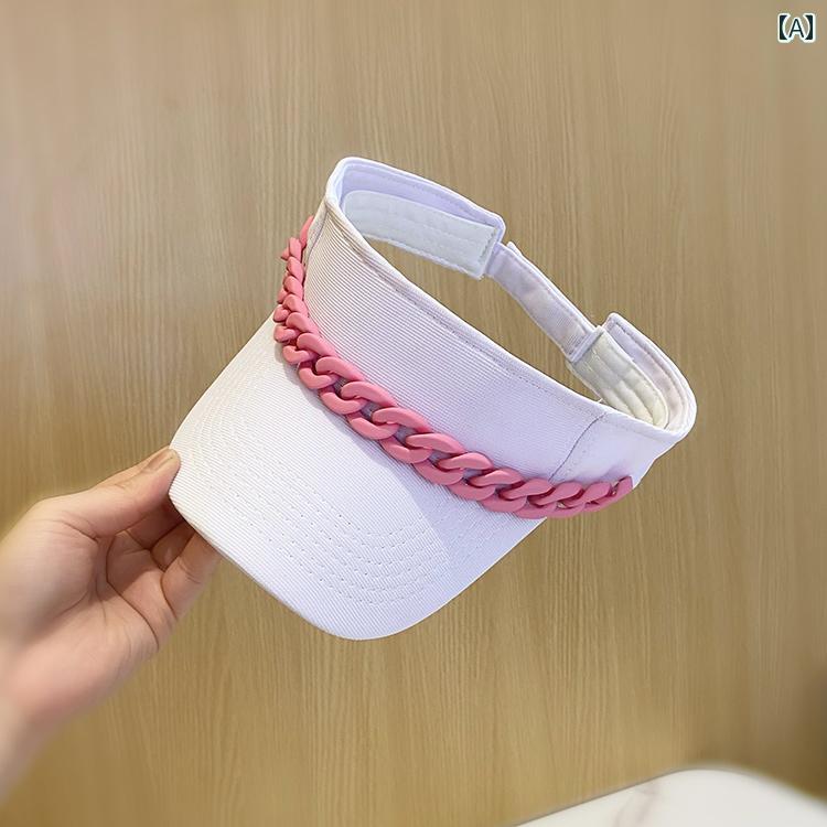サンバイザー 韓国 オープントップ ハット レディース チェーン ひさし 帽子 夏 屋外 外出 スポーツ 日よけ ハット