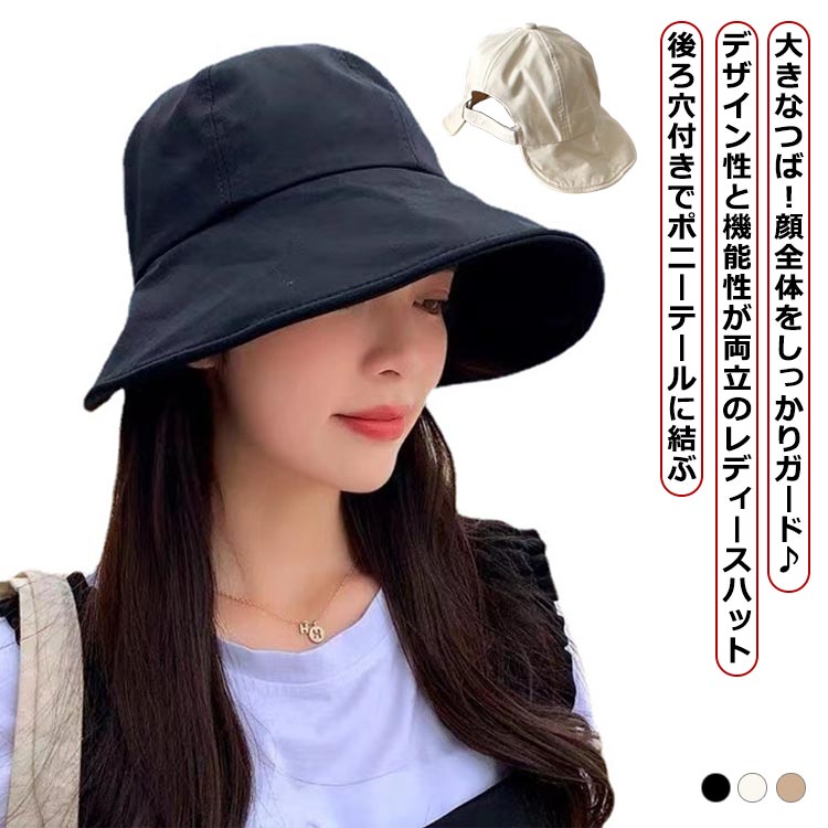 ポニーテール穴付き ハット 大きなつば 大きいサイズ キャップ 大きなつば レディース 折りたたみ 速乾 帽子 軽量 可能 日よけ吸汗 春夏 送料無料 無地 お出かけ 通勤 紫外線対策 バケットハット ブラック ベージュ キャメル