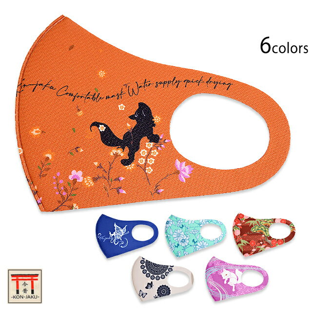 今昔ウレタンマスク2枚組セット(4) 今昔 KJ-0603 和柄 和風 狐 きつね キツネ 男女兼用[new]