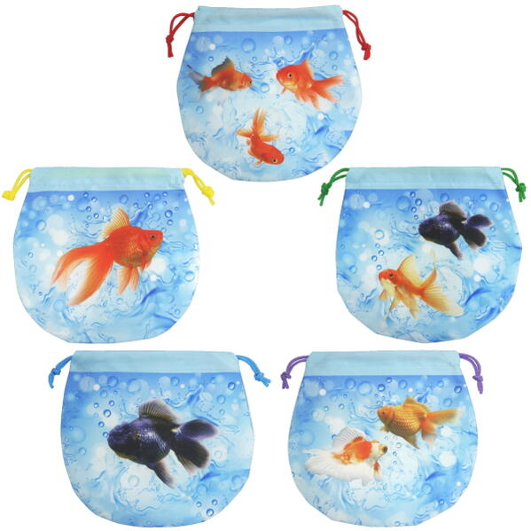 まんまる 金魚袋 巾着 5柄 各1枚セット