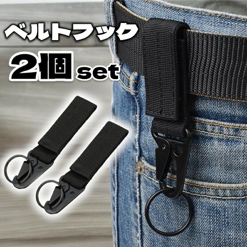 \BFセール/ カラビナ ベルトフック タクティカル 多機能 アウトドア 2個セット ナイロンベルト ブラック MOLLE 対応 アウトドア 登山 バックパック サバゲー バッグ ベルト 鍵 キーホルダー ウエストポーチ 軽量 キャンプ用品 ブラック カーキ グリーン ギフト