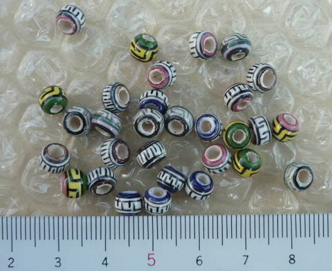 ペルー ビーズ 各6個 計30個 (極小) アンデス クスコ 手書き アクセサリーパーツ 丸 民族商品 インカ 幾何学柄 インカ ナスカ フォルクローレ ピリミリ