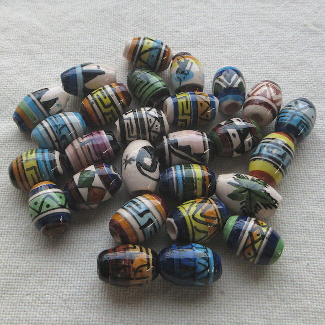 ペルー ビーズ 陶器製 PI-楕円-1 27 個 アンデス クスコ アクセサリーパーツ 可愛い 綺麗 民族商品 伝統商品 インカ ナスカ フォルクローレ ピリミリ