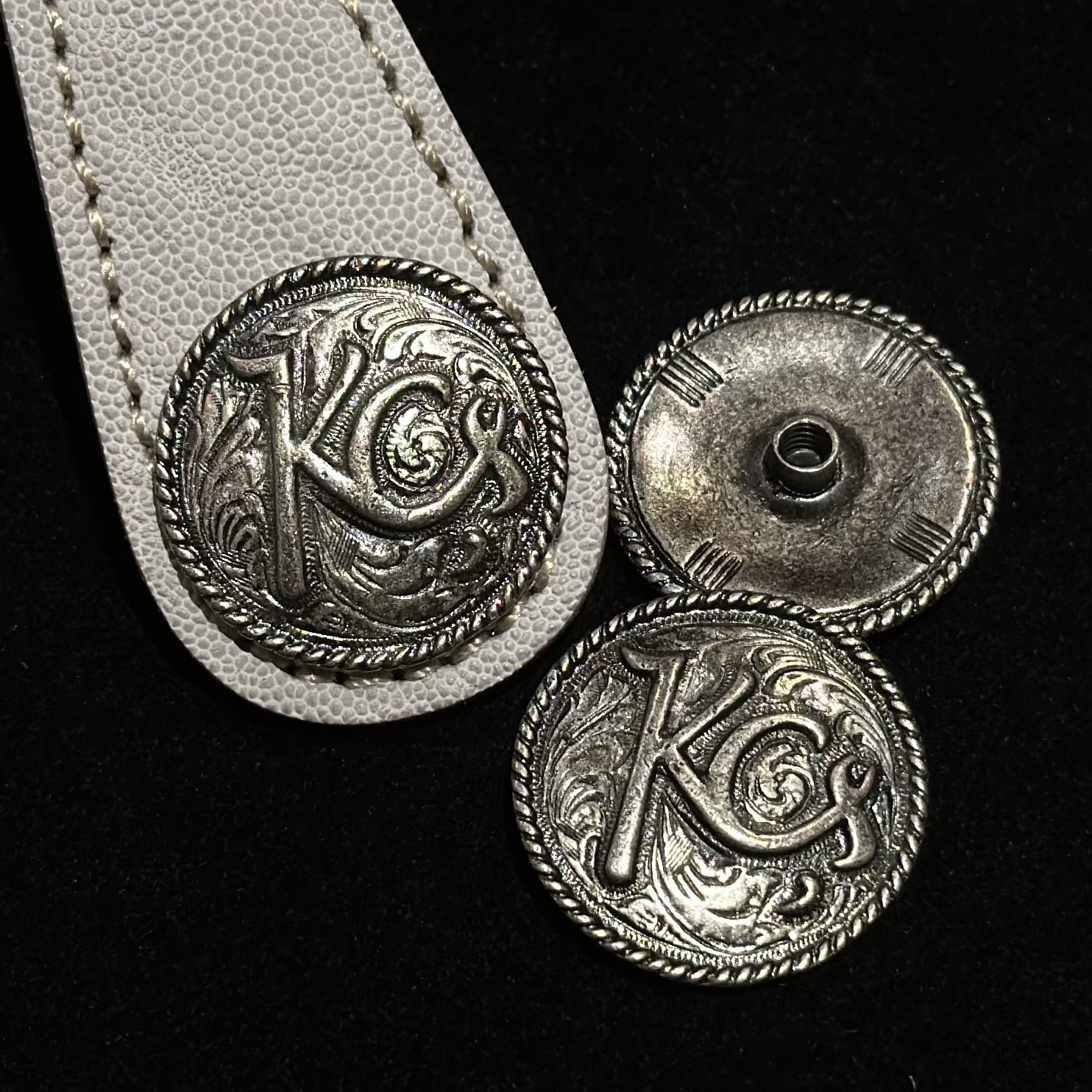 【KC,s】ケーシーズ オリジナルコンチョ ロゴ 31mm コンチョ カスタムパーツ ブランドロゴ 職人 立体 ロゴデザイン スクリュー ネジ式 3.1cm 財布 キーリング 日本製 かっこいい おしゃれ ブランド カスタム パーツ アレンジ カスタマイズ 大きめ シルバー 銀色