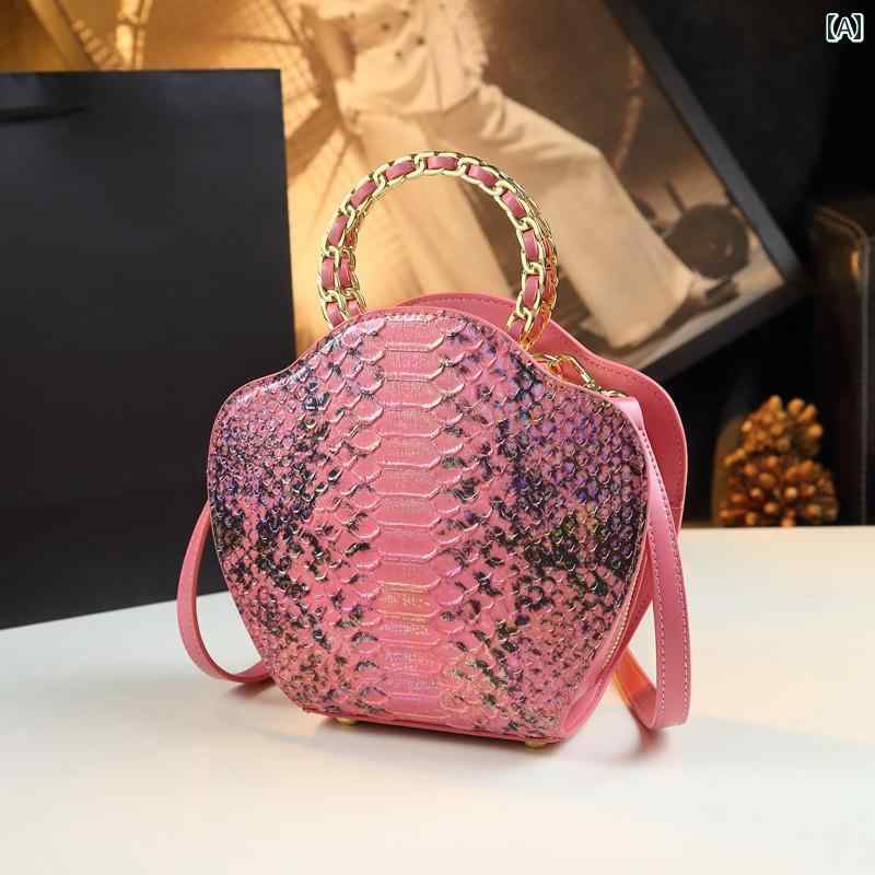 ハンドバッグ レディース おしゃれ ヘビ革 ラウンドボックス 立体バッグ 合成皮革 クロスボディバッグ 小さめラウンドバック レディース