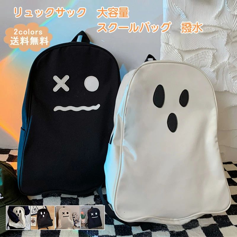 【3点15%offクーポン配布中! リュックサック レディース メンズ スクールバッグ デイパック 学生鞄 手提げ 幽霊柄 多機能 大容量 撥水 可愛い 通勤 通学