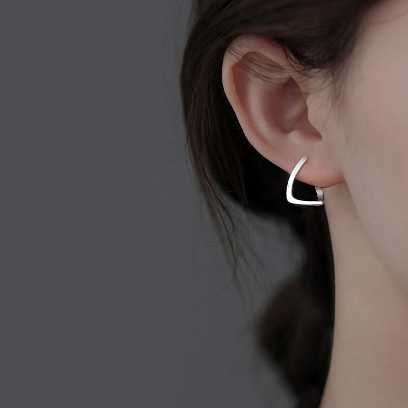 ピアス レディース S925 シルバー 小さめ ひねり 幾何学模様 スクエア 四角形 イヤリング イヤーカフ 高見え 豪華感 シルバー925 電気メッキ加工 上品 アクセサリー