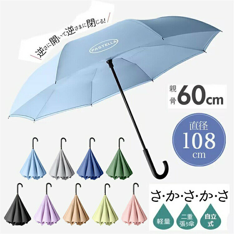 傘 逆さ傘 長傘 雨傘 手動開閉 8本骨 自立式 2重構造 耐風 撥水加工 逆転傘 逆折り式傘 自立傘 長傘 便利ハンズフリー 雨の日 おしゃれ レディース メンズ さかさま傘 梅雨対策 逆折り 母の日 敬老の日