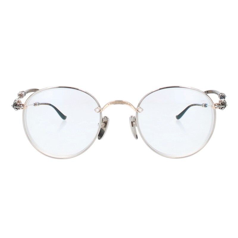 クロムハーツ Chrome Hearts サイズ:49□22-145 BUBBA-A クロステンプルメタルフレームラウンドメガネ((フレーム)ブラック×シルバー)【519052】【OK15】【小物】【中古】bb379#rinkan*B