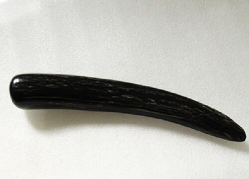 水牛かっさ棒材・長さ145m/m。黒(天然色)。専門職用。木口約23×21m/m前後・重さ約37g前後。二つの画像は同一のものです。日本製。ゆうパケット便。