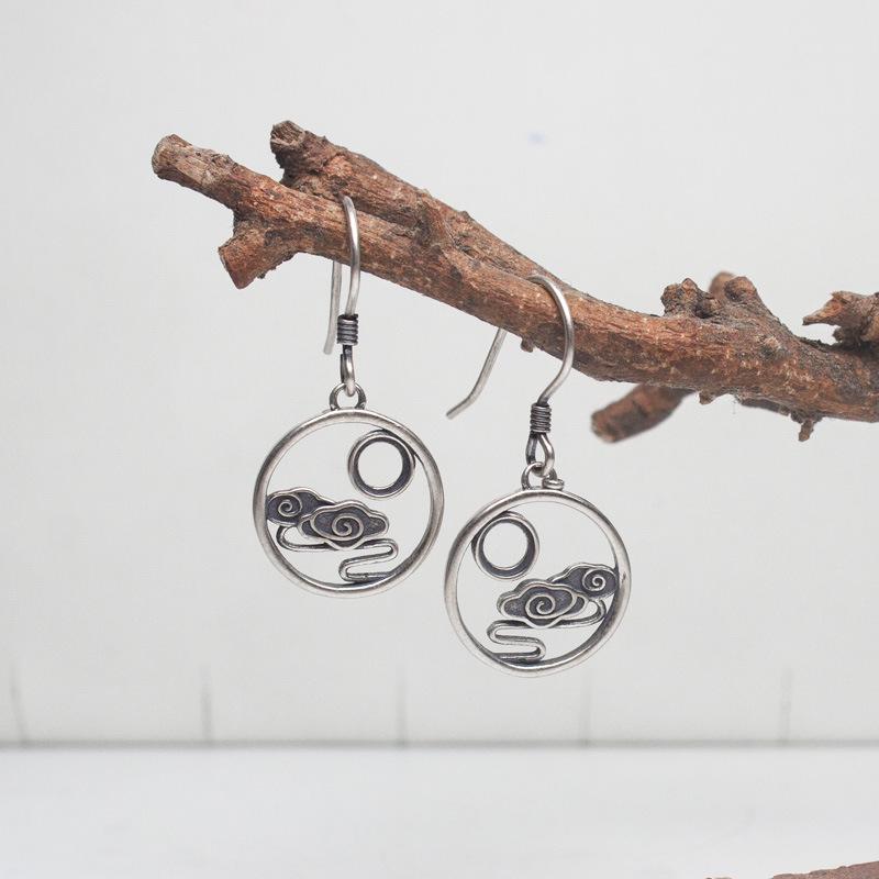 ピアスパーツ レディース シルバー925 透かし彫り 祥雲デザイン 丸型 ピアスフック 空枠 ハンドメイド DIY素材 民族風 エスニック レトロ アンティーク風(x2)