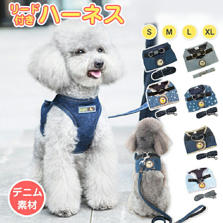 犬 ハーネス リード付き デニム 犬用 猫用 小型犬 可愛い 中型犬 おしゃれ 猫 ウェアハーネス 抜けない 脱げない 胴輪 簡単装着 ペット用 キャット ドッグ いぬ かわいい かっこいい マジックテープ 犬具 服 超小型犬 散歩 お出かけ