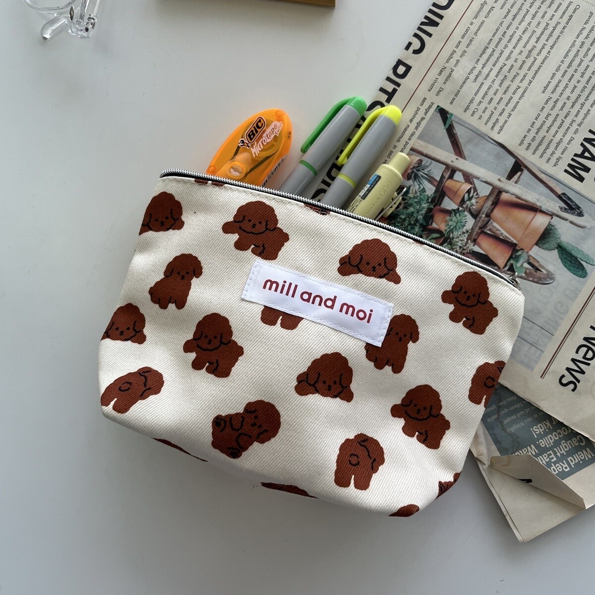プードル ブラウン ポーチ マチ付き ミルアンドモイ 韓国 推し活/mill and moi(mill and moi)