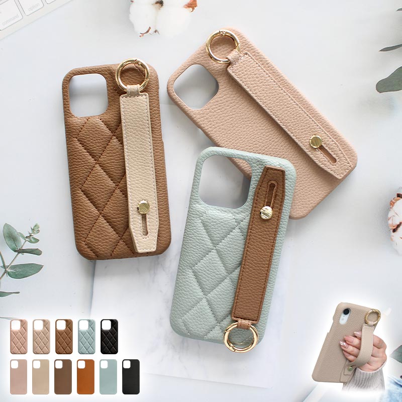 スマホケース スマホカバー iPhoneケース【レザーハードorキルティングケース×レザーベルト】スマホバンド 持ち手 iphone ケース カバー 携帯ケース スマホスタンド スマホベルト 落下防止 ギフト メール便送料無料 受注生産