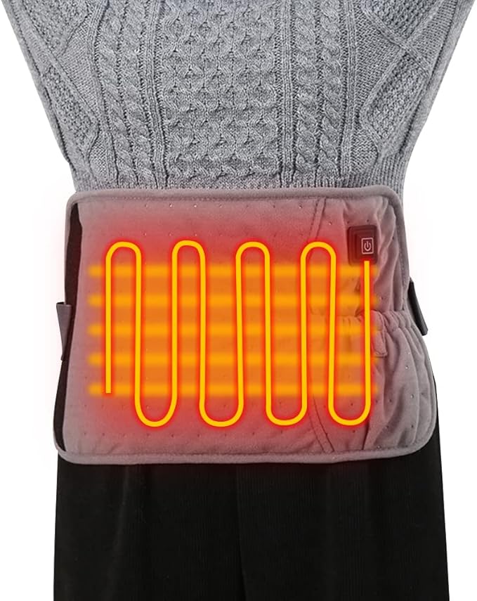 電熱腰ベルト 48℃・43℃・37℃ 電気腰パッド ホットベルト 遠赤外線加熱 腹巻き 腰用 ホットサポーター 自宅用&オフィス用 月経 背中 お腹 腰 USB給電式 男女兼用 フリーサイズ(グレー,44*25cm)