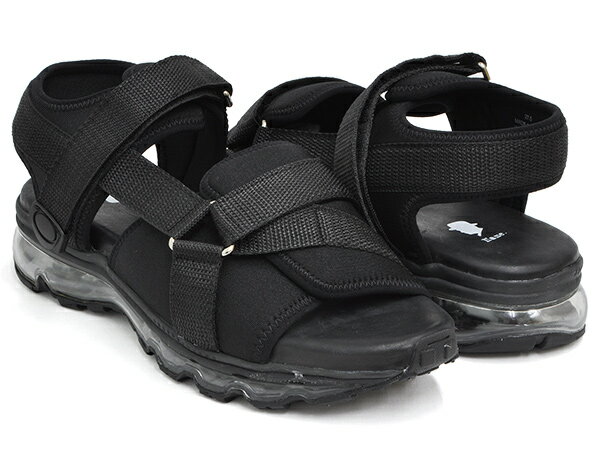 ●ATTENTION ■サイズについて こちらの商品の着用感は一般的なスニーカーに比べると0.5cm程度大きいため、通常サイズより0.5〜1.0cm小さいサイズをおすすめしております。 ■ご着用時の注意点 こちらの商品に使用されている素材の性質上、水分や汗、摩擦により色移りする場合がございます。淡色系の靴下や衣類着用時には、十分ご注意下さい。 ■在庫について こちらの商品は実店舗と在庫を共有しておりますので、売り違いが生じる事がございます。予めご了承下さい。Tomo & Co AIR SANDAL #tm-name-0011-bk-bk BLACK / BLACK AIR SOLE "芸術家気取り"というひねくれた視点と発想から、フレッシュでユニークなアイテムを展開してきた"ARTYZ"が、ブランド設立11年目のスタートを機に、帽子・シャツ・靴に特化したブランドとして名を改めた"Tomo & Co"。ARTYZの最終シーズンに登場し、360度エアソールと一見ミスマッチなアッパーを見事に融合させたシューズシリーズでシーンを騒がせています。 こちらはスタンダードを再構築するアパレルブランド"Name."とのコラボレーションモデルで、前部の幅広パッドと、前後のベルクロストラップでフィット性を調整できる"スポーツサンダル"のアッパーに、エアソールをドッキングしたハイブリッドサンダル。アッパーからソールまで全てをブラックで統一したインラインにはないオールブラックモデル。 CONNECT: ORDER:
