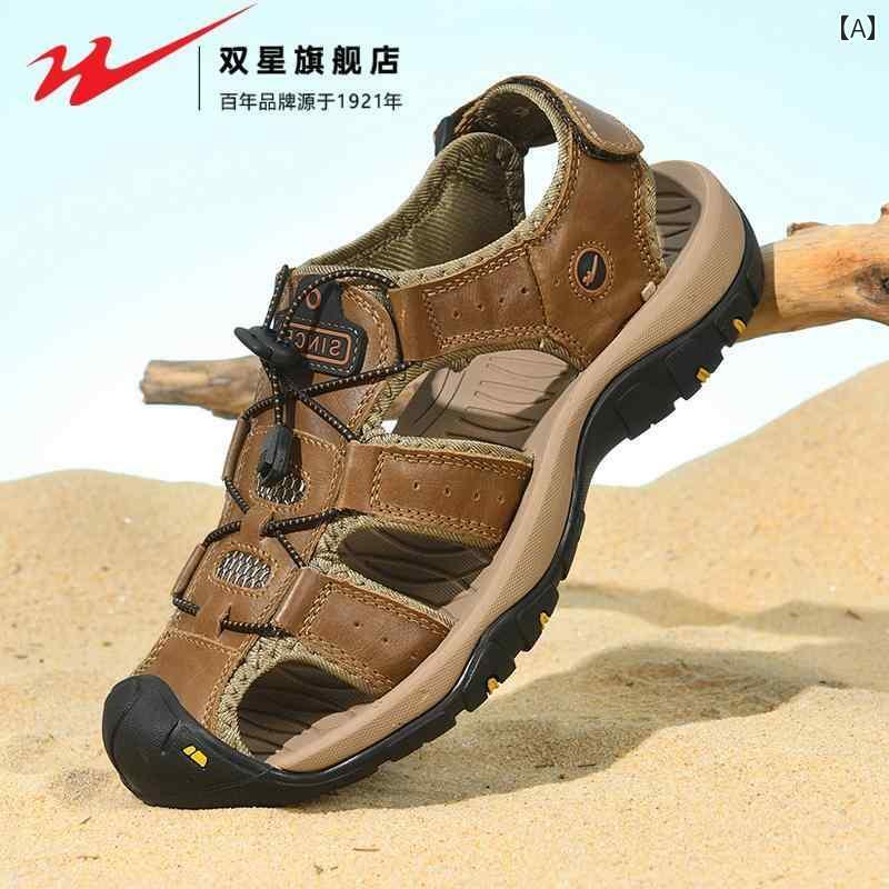 履き心地抜群 メンズ サンダル ダブル スター 包 頭 サンダル メンズ 夏 アウトドアウェア 革 ソフト ソール 滑り止め スポーツ アウトドア ウェーディング ビーチ シューズ 大きいサイズ
