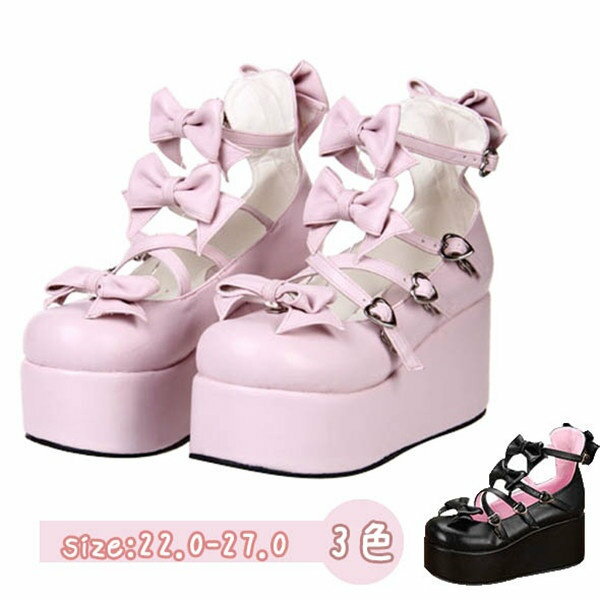 ロリータ 靴 厚底 lolita ロリータ風 リボン付き メイド靴 パンプス 可愛い 大きいサイズ お嬢様 ロリータ靴 女の子 厚底 合皮 PU コスチューム 演奏会 文化祭 イベント 舞台 21.5 22.0 22.5 23.0 23.5 24.0 24.5 25.0 25.5 26.0 26.5 27.0 28.5