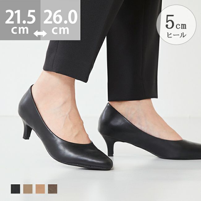 『かっこよすぎず可愛すぎない最適お仕事パンプス』かわいすぎずかっこよすぎないアーモンドトゥが使いやすい1足。ビジネスシーンで使いやすい落ち着いた4色展開。かっちりしすぎていないのでオフでも使える優秀パンプスです。<ポイント>1.痛くなりにくい&ムレにくいライニングライニング(内側の生地)にはスポンジが入っているので足当たりが良く痛くなりにくい。メッシュ素材で蒸れにくいのもうれしいポイント!2.高反発クッションで疲れを軽減長時間の使用でもへたりにくい高反発インソールを使用。ふわふわで歩くときに体重のかかる部分をサポートしてくれるから長時間歩いても疲れにくい。3.カパカパしにくいかかとクッションかかとの両サイドにはやわらかなクッション入りで、フィット感を高めてかかと抜けを防止。パカパカしづらく歩きやすい!=============◆サイズ選びに困っていませんか?\スタッフが試着してみました!/▼もりん / 普段サイズ:22.0cm【E】選ぶサイズ⇒22.022.0は全体的にピッタリで履きやすい。つま先捨て寸約15mm。22.5は踵周りが緩く足が動くので選べない。つま先捨て寸約20mm。▼はまさん / 普段サイズ:23.5cm【2E】選ぶサイズ⇒23.523.5は全体的にピッタリ。薬指の先が当たるが馴染みそう。つま先捨て寸約10mm。24.0は足囲はややゆとりあり。つま先捨て寸約15mm。踵が深く当たるので23.5を選ぶ。▼みゆのほ / 普段サイズ:24.5cm【D】選ぶサイズ⇒24.024.0は全体的にキツめのピッタリ。つま先捨て寸約20mm。24.5は歩くと踵が脱げるため24.0を選ぶ。※足の形には個人差があります。スタッフ試着感想は参考程度にお考え下さい。=============◆アイテムスペック▼サイズ【21.5cm】足長(木型):23.6cm/足幅(木型):7.7cm【22.0cm】足長(木型):24.1cm/足幅(木型):7.8cm【22.5cm】足長(木型):24.6cm/足幅(木型):7.9cm【23.0cm】足長(木型):25.1cm/足幅(木型):8.0cm【23.5cm】足長(木型):25.6cm/足幅(木型):8.1cm【24.0cm】足長(木型):26.1cm/足幅(木型):8.2cm【24.5cm】足長(木型):26.6cm/足幅(木型):8.3cm【25.0cm】足長(木型):27.1cm/足幅(木型):8.4cm【25.5cm】足長(木型):27.6cm/足幅(木型):8.5cm【26.0cm】足長(木型):28.1cm/足幅(木型):8.6cm※掲載サイズは、靴のラスト(木型)のデータです。手作りの商品の為、製造段階で個体差が生じます。ヒールの高さ:約5.0cm素材:合成皮革/合成繊維片足重量:約175gワイズ:3E=============【機能性】: 高反発クッション 高反発 クッション 蒸れにくい 蒸れない むれにくい ムレにくい 痛くない 歩きやすい 疲れない 疲れにくい 大きいサイズ 小さいサイズ【シーン】: デート おでかけ お出かけ カフェ ショッピング 買い物 OL オフィス オフィスカジュアル ビジネス リクルート 会社 仕事 仕事用 職場 職場用 通勤 立ち仕事 お呼ばれ パーティ パーティー フォーマル 冠婚葬祭 結婚式 参観 卒園式 卒業式 二次会 入園式 入学式 発表会 披露宴 法事 お葬式【デザイン】: ベーシックパンプス パンプス 履きやすい【おすすめカラー】: 黒 ブラック 灰 グレー 灰 肌色 グレー ベージュ グレージュ 肌色 ベージュ23.5cm : 【ヒール寸】5cm別カラーはこちら! ベージュ(2032ピンクベージュEN) ブラック(1020ブラックPU) グレー(1034グレージュPU)