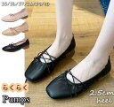 レディース ベーシック 楽ちん フラット パンプス リボン クロス PU【大きいサイズ レディース 痛くない ストラップ ぺたんこ 太ヒール パーティー ヒール 定番 靴 pumps】