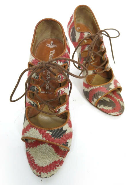 【中古】 Vivienne Westwood / スクイグル柄 オープントゥ ハイヒール パンプス ヴィヴィアンウエストウッド サイズ37 靴 シューズ サンダル B68387_2505
