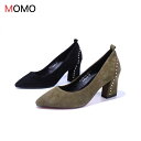 スエード調 スタッズ ポインテッドトゥ チャンキーヒール 太ヒール ヒールパンプス スウェード ヒール ハイヒール パンプス シューズ 靴 カラバリ デザイン 秋 冬 ファッション 美脚 レディース お出かけ ins デート 韓国 トレンド ママ ガール