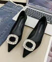 LOWO ビジュー ローヒール ポインテッドトゥ パンプス ガール シューズ・靴 パンプス ブラック【送料無料】