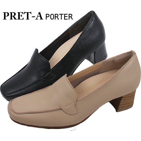 ヒールローファー ブラック ベージュ 冠婚葬祭 結婚式 幅広3E スウェード調 プレタポルテ PRET-A porter 9515 おしゃれ 【レディース】