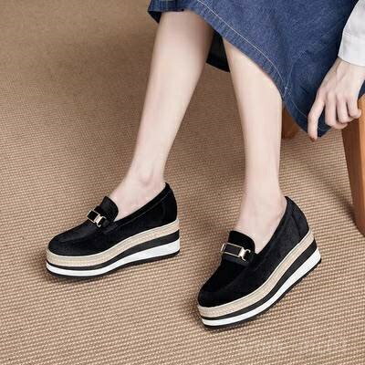 レディース 厚底 ローファー パンプス 厚底 ローヒール コンフォート フラット 7cm 黒 歩きやすい 厚底シューズ 痛くない 靴 ベルト 学生靴 スクール ブラック 夏春秋 おしゃれ 定番 ラウンドトゥ ベルトバックル 厚底ヒール 美脚 スリッポン スウェード