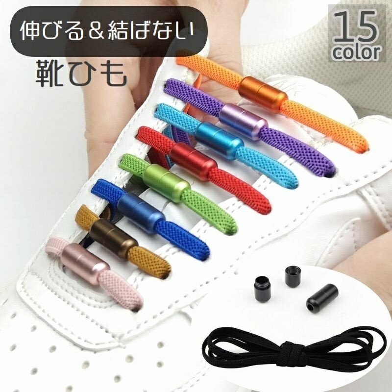 送料無料 靴紐 くつひも 靴ひも シューレース ほどけない 結ばない スニーカー用 長さ調整可能 ねじ ネジ式 無地 シンプル おしゃれ カジュアル 伸縮性 伸びる フリーサイズ 便利 解けない カラバリ豊富 ブラック 黒 ホワイト 白 ネイビー 紺 青 ブルー ブラウン 茶 レッド