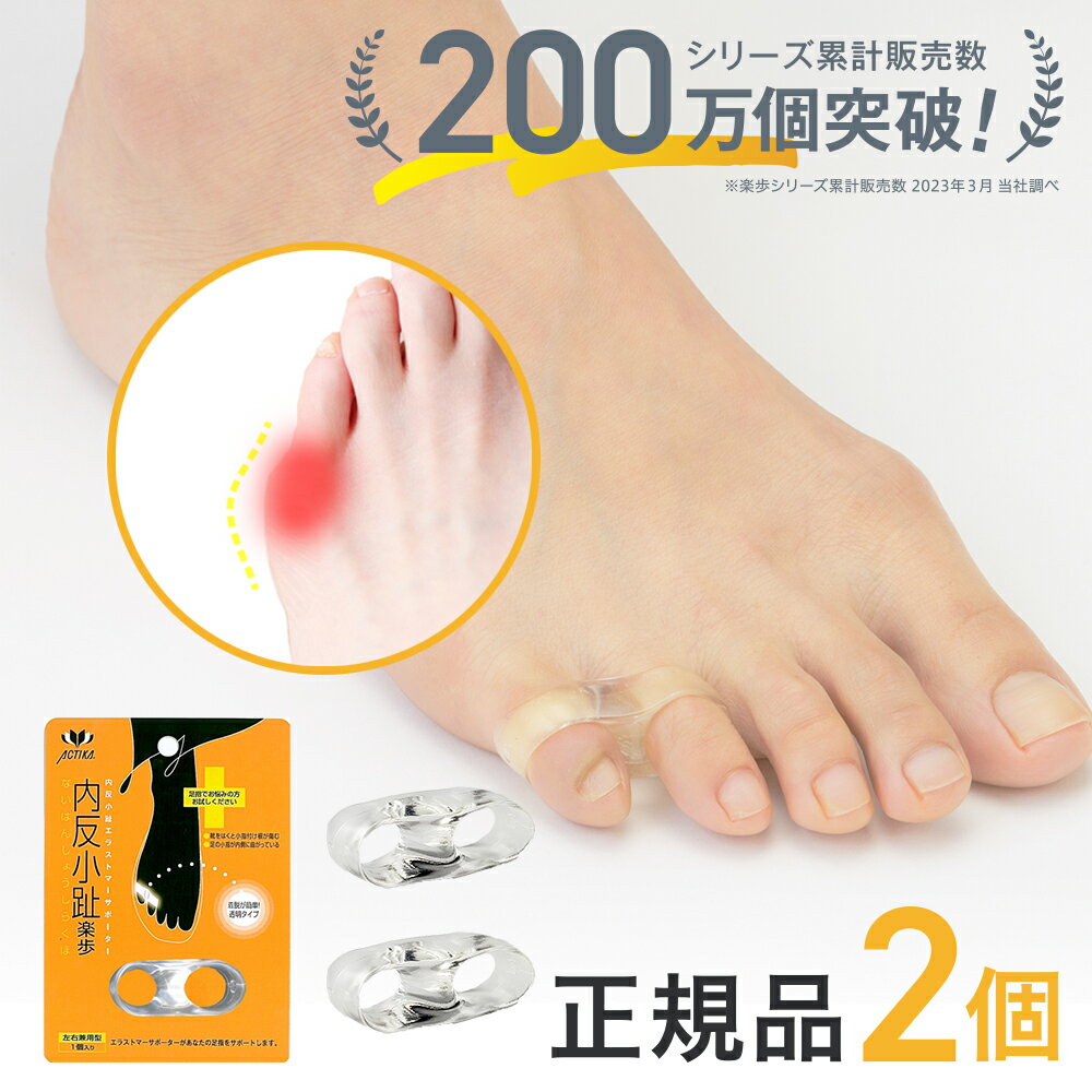 商品説明 ブランド Actika 名称 内反小趾楽歩 正規品2個セット (両足分) 特徴 ■エラストマーを使用。洗えるので繰り返し使えて衛生的です。■やわらかな素材なので摩擦や痛みを軽減します。■着脱が簡単で目立ちません。■窮屈な靴や生活変化で本来の足の機能が低下して起こる、痛みや変形を伴う内反小趾。内反小趾楽歩なら指間クッションが足指を広げた状態をキープ。 サイズ (穴直径):小指側約12mm/薬指側約12mm カラー クリア 素材 スチレン系エラストマー 使用方法 内反小趾が気になる足の小指と薬指に装着してお使いください。 ご使用上の注意 ・本製品は治療用ではありません。定められた使用方法をまもってください。・傷口には直接あてないでください。・使用部分に薬剤が残っていると劣化することがありますので薬を塗った部分には使用しないでください。・汚れはぬるま湯で洗浄し、陰干しにて乾燥させてください。・本品の使用により発疹、発赤、湿疹などの症状が現れた場合にはご使用をおやめください。・血行障害、糖尿病の方、足裏や指などに傷、湿疹等のある方は医師に相談の上ご使用ください。・慣れるまでは短い時間からご使用ください。また就寝時はご使用をおやめください。・直射日光を避け、保管してください。・商品の特性上ネバリ感があります。違和感がある場合はベビーパウダーを塗布して水洗いすればネバリ感はなくなります。装着したまま靴下を履けます。 靴を履く場合、靴のゆとりによってはご使用になれませんのでその場合は室内用としてお使い下さい。 製造国 日本 関連商品 ・内反小趾楽歩 1個入 (片足分) ・内反小趾楽歩サイドサポート付き ・内反小趾楽歩サイドサポート付き(両足入り) ・外反母趾楽歩(男性用女性用) 外反母趾楽歩(男性用女性用)2個セット(両足入り)