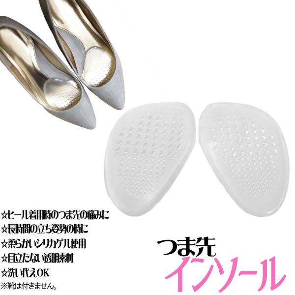 ■商品名 つま先インソール ■商品説明 長時間の歩行や立位のために足先にかかる不快な圧力を緩和する商品です。 足裏の痛みを防止し、滑り止めとしても効果があります。 2枚セット(1足分)の商品で、透明のクッション材なので、目立ちません。 パンプス、ミュール、ハイヒール、スニーカー、革靴、ビジネスシューズ、カジュアルシューズ、ブーツ等々、つま先部分に貼るだけでほとんどの靴に簡単にご利用頂けます。 靴に応じて様々な角度で使用することができます。 水洗いをすれば繰り返し使えるので衛生的です。 こんな方にオススメ ・長時間の歩行や立位のために足先に疲労を感じている方 ・大き目の靴を購入してしまった方 ・足裏の痛みが気になる方 ■商品詳細 ■商品名 つま先インソール ■サイズ フリー 縦:最長9.5cm 横幅:最長6.5.cm 厚さ:2.5mm (サイズが合わない場合はハサミで切って調整できます) ■カラー 透明色 ■素材 シリコン ■材質 ゴムに近く、柔らかい材質 ■商品内容物 ・つま先インソール左右1枚づつ ■注意事項 お肌に合わない場合は、ご使用をお止め下さい。 ■SEARCH WORD 革 靴 シューズ パンプス 通勤 ブーツ 中敷 パッド パット 保護 足 脚 指 つまさき つま先 インソール 中敷 ゴム シリコン 柔らかい 外反母趾 保護 ガード 男女 兼用 女性 男性 ポイント 消化 消費 靴 入れる