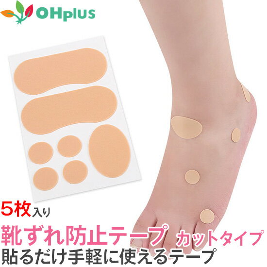 靴ずれ防止テープ カットタイプ 5枚入り | かかと 靴擦れ 予防 テープ 伸縮性抜群 柔軟性 防水 くつずれ クツズレ 靴づれ くつ擦れ 靴ズレ くつづれ 踵 カカト 痛い時 足指 手 膝 肘 保護 シールパッド テープパッド