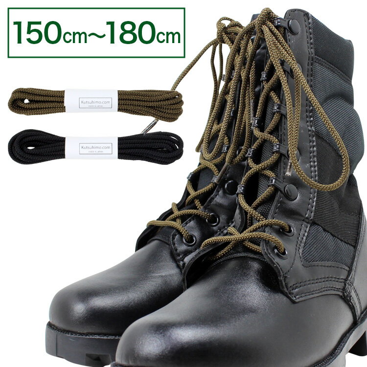 コンバットブーツ用ミリタリー靴ひも・芯入り・約3mm幅【長さ:150cm〜180cm】(K-CAJ3)