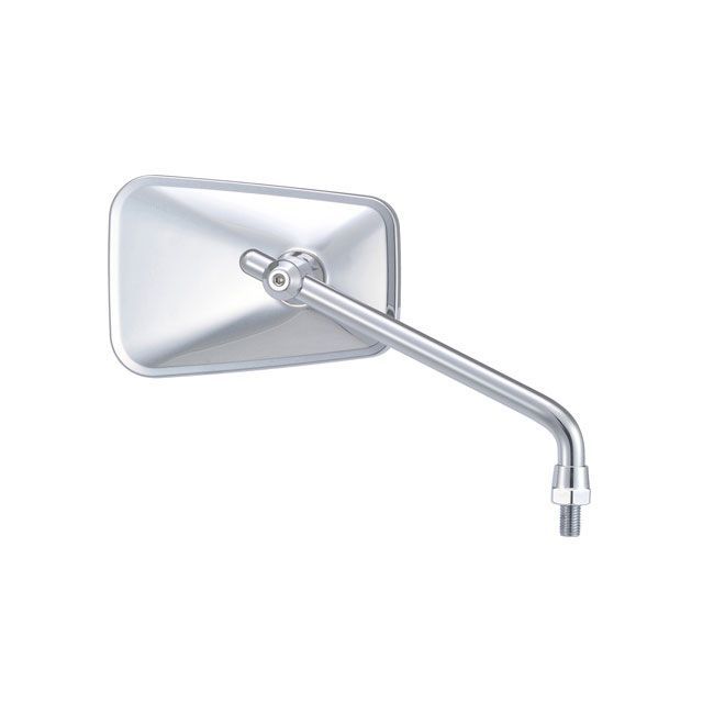 商品説明★ 耐振・広角のハイビジミラー・直径12mmの極太ロッドで振動に強い!・曲率R1000の広角ミラーで後方視界が広い!ミラーハウジングはロッドをスライドさせて位置を調整可能。車体のフォルムに合わせ、高低2種類のロッドを用意。 ※ラウンド、クラシックのみ≪CLASSIC≫クラシックなスクエア形状。・高低2種類のロッドを用意・鏡面: クリアミラー・左右共通・カラー: クロームメッキ・ロッド: ロー・ネジ径: M10正ネジ・サイズ: 新保安基準適合サイズ※新保安基準適合外について 鏡面積は新保安基準に適合したサイズですが、衝撃緩衝装置が無いため新保安基準適合外となります。